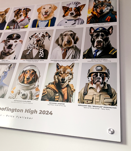 Vi tilbyr et bredt utvalg av plater, som aluminium, PVC og akryl, som kan dekoreres med logo, budskap eller annen informasjon. Platene kan leveres heldekket eller delvis dekket, og vi hjelper deg med kreative løsninger som passer ditt behov og budsjett.